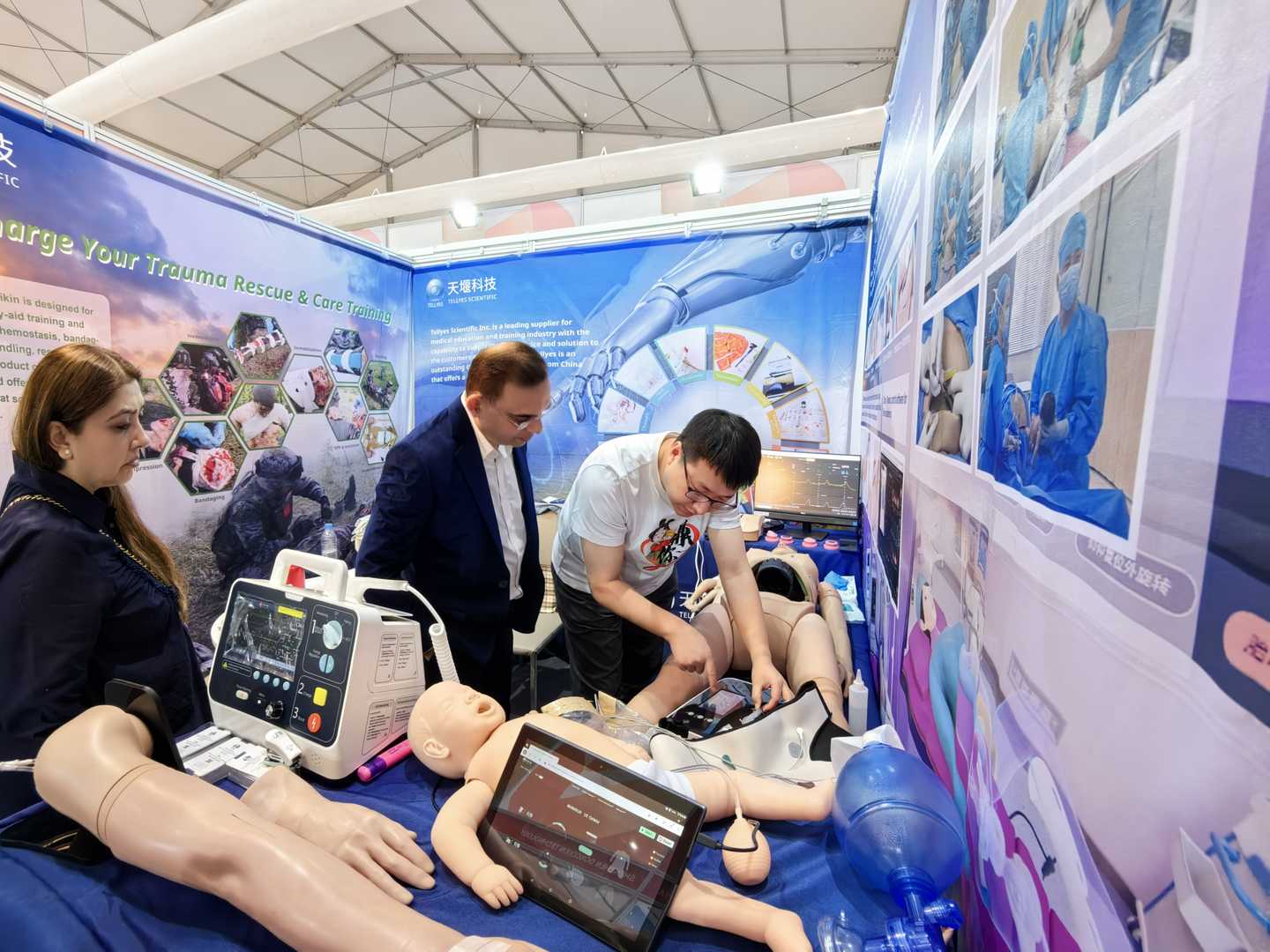 At this exhibition, Tellyes Scientific INC. showcased a range of high-tech medical simulation products, including :