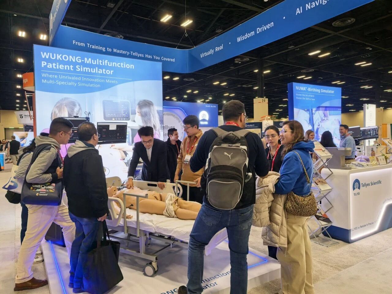 WUKONG-Multifunction Patient Simulator made his charming debut, capturing the attention of the entire hall and attracting a large number of visitors to gather and explore. Additionally, NUWA?-Birthing Simulator drew crowds with her highly precise simulation of the entire birthing process and dynamic feedback powered by physiological-driven algorithms.