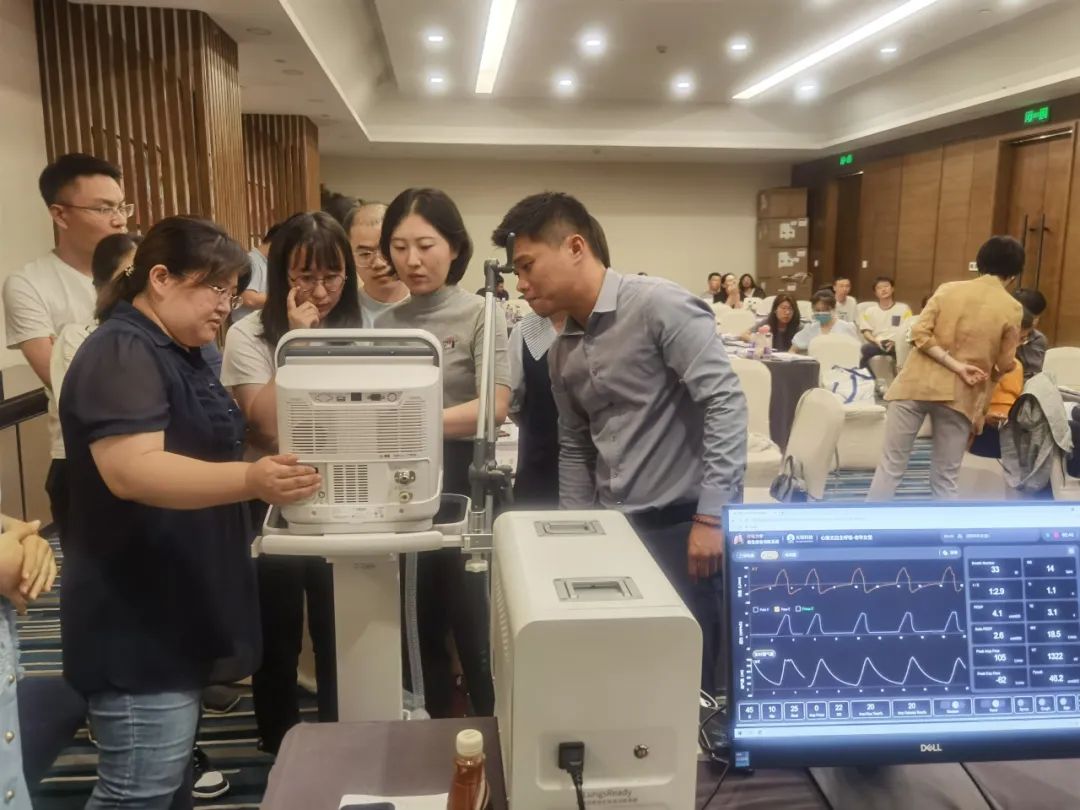 在進(jìn)行機(jī)械通氣實(shí)戰(zhàn)課程時,天堰科技“模擬肺”模擬了“心衰、自主呼吸強(qiáng)但不穩(wěn)定”、“重癥肌無力”“哮喘伴意識不清醒”、“創(chuàng)傷后呼吸困難3天,確認(rèn)為ARDS”等不同疾病狀態(tài)下患者的呼吸運(yùn)動變化,現(xiàn)場學(xué)員爭先上手體驗(yàn)真實(shí)呼吸機(jī)對“模擬肺”虛擬病人進(jìn)行救治,李晨主任與天堰技術(shù)人員配合不斷調(diào)整虛擬病人病情,增加救治難度。呼吸治療師袁吉騰老師則對學(xué)員的實(shí)操進(jìn)行專業(yè)指導(dǎo)。此次實(shí)戰(zhàn)課程達(dá)到了很好的授課效果,收獲了現(xiàn)場學(xué)員的一致好評,天堰科技“模擬肺”被在場專家贊譽(yù)為“國貨之光”。