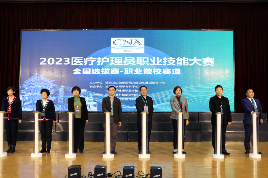 2023年12月1日,由國家衛(wèi)生健康委能力建設和繼續(xù)教育中心主辦,滄州醫(yī)學高等??茖W校、北京百洋健康職業(yè)學校聯(lián)合承辦,天津天堰科技股份有限公司、慧醫(yī)(天津)教育科技有限公司等單位協(xié)辦的首屆醫(yī)療護理員職業(yè)技能大賽(職業(yè)院校賽道)全國選拔賽開幕式在滄州醫(yī)學高等??茖W校隆重舉行。